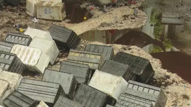 執(zhí)法人員進(jìn)入時(shí),老板和工人剛逃跑,只剩1名看門(mén)男子。而帶有強(qiáng)腐蝕性的電池廢液,無(wú)任何處理滿地橫流,現(xiàn)場(chǎng)地表和圍擋的金屬,都已被嚴(yán)重腐蝕。