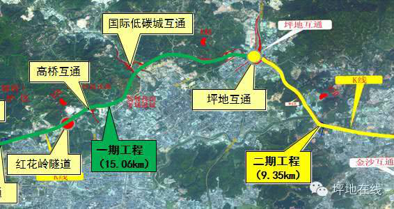 外環(huán)高速一期工程龍崗段起點,位于深莞交界(順接項目的東莞段),往東分別經龍崗、坪地街道終點與惠鹽高速相接。
