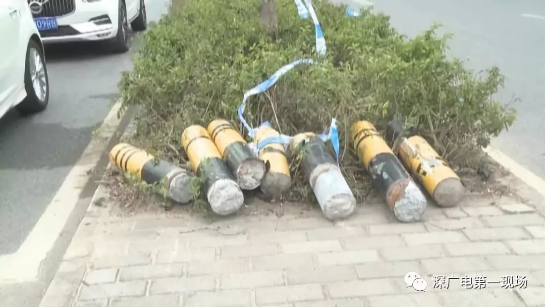 這一撞還不算完,車輛帶著慣性接連沖斷了交通信號燈和整整6根碗口粗的交通隔離柱,隨后才在綠化隔離帶里停了下來。