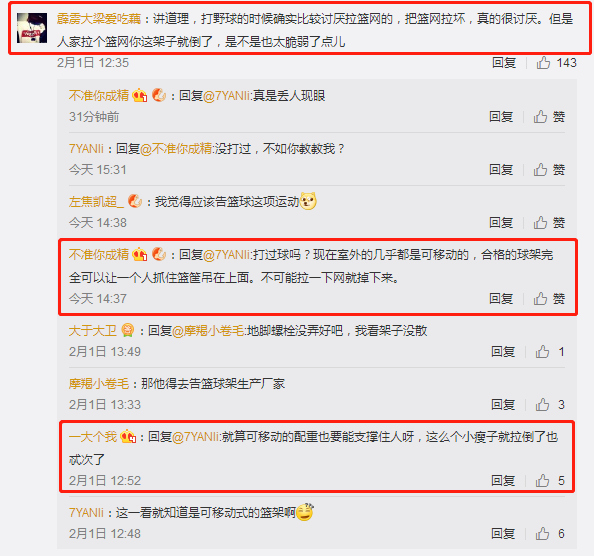 另外一部分網友則認為,即便傷者的行為有欠妥之處,但籃球架一拉就倒,證明其本身確實存在質量問題。
