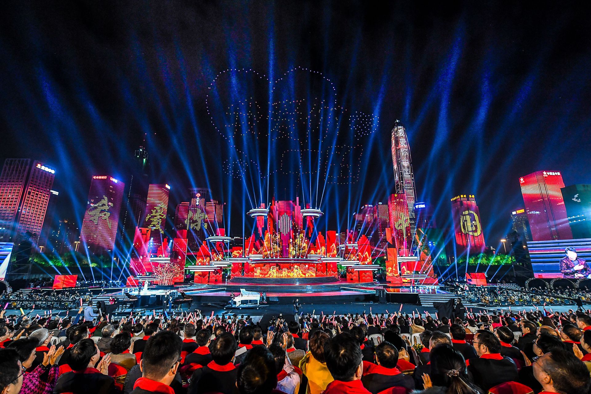 在除夕夜的“深圳七分鐘”中,郎朗就已帶領(lǐng)150名深圳鋼琴愛(ài)好者奏響美妙琴音,在《擁抱春天——深圳春節(jié)聯(lián)歡晚會(huì)》中,郎朗再度亮相,獻(xiàn)上鋼琴獨(dú)奏《我愛(ài)你中國(guó)》,伴隨如詩(shī)般美麗如江河般奔騰的琴聲響起,規(guī)模龐大的無(wú)人機(jī)編隊(duì)將陸續(xù)升空,通過(guò)不同的顏色與排列,時(shí)而呈現(xiàn)盛世花開,時(shí)而排列出“我愛(ài)你中國(guó)”的字樣,與繁星共飾夜空。