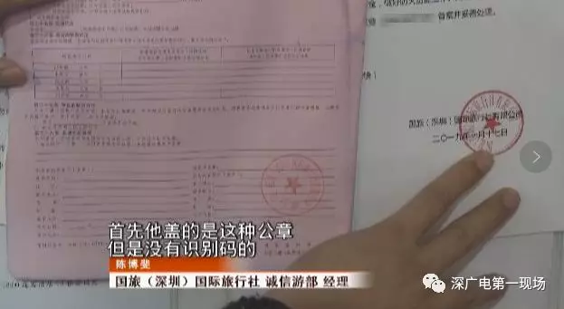 李女士是通過上網(wǎng)百度搜索,找了這家自稱深圳“國旅”的野馬旅行社,并且,在與李女士等46人簽定的合同和收據(jù)落款處,都蓋有清晰的深圳市國旅印章。8號上午,李女士拿到了證件,沒等購物開始,就簽字先行離團(tuán)轉(zhuǎn)至現(xiàn)在的酒店安頓,同時(shí)打電話發(fā)微信向深圳的朋友求助。人大代表?xiàng)钋陉P(guān)注到此事后,將情況轉(zhuǎn)告了深圳市消費(fèi)者委員會。消委會透露,經(jīng)與深圳國旅確認(rèn),北方大廈7樓無他們的營業(yè)網(wǎng)點(diǎn),“珊珊”等也并非國旅員工。