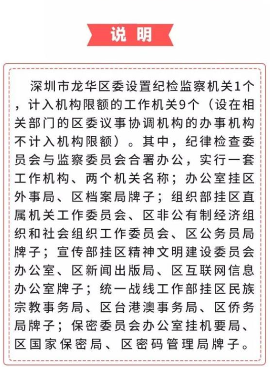 近日,《深圳市龍華區(qū)機(jī)構(gòu)改革方案》(以下簡稱“方案”)經(jīng)省委批準(zhǔn),以省委機(jī)構(gòu)編制委員會名義正式印發(fā)。2月14日,區(qū)委召開一屆六次全會,對全區(qū)深化機(jī)構(gòu)改革工作進(jìn)行動員部署,龍華區(qū)機(jī)構(gòu)改革工作進(jìn)入全面實(shí)施階段。