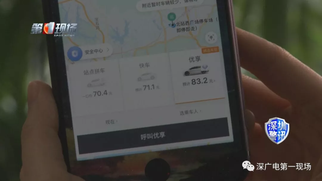 從深圳北站到光明唐家村,藍牌車司機叫價100塊錢,這是貴還是便宜呢?記者用打車軟件預估了一下,如果選擇快車里價格相對較貴的“優(yōu)享快車”,價格是80塊錢,比藍牌車的拼車報價便宜了20塊錢。