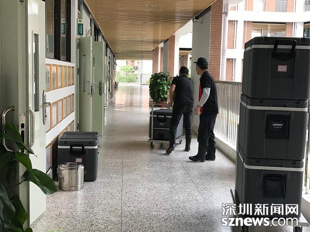 送餐人員在上午課程結(jié)束前將午餐送到每個(gè)班級門口