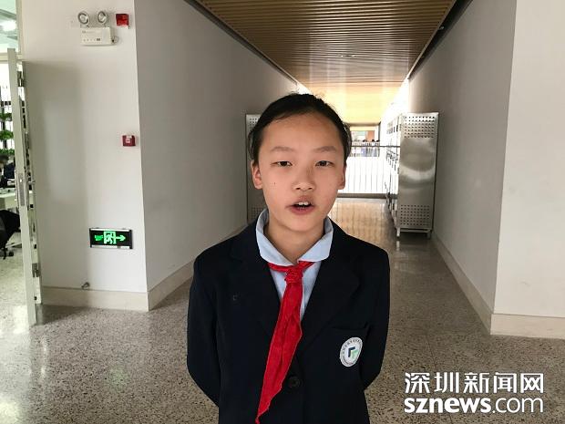 七年級4班的甘欣怡接受記者采訪