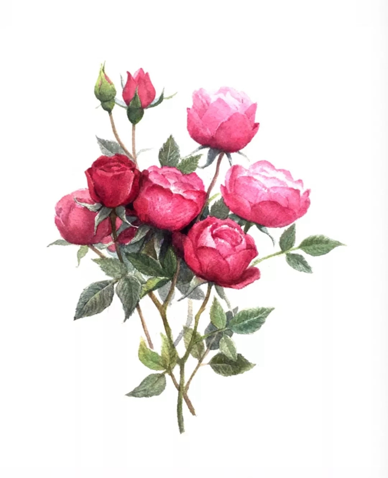 (新品種月季花手繪圖,作者:游志琳)