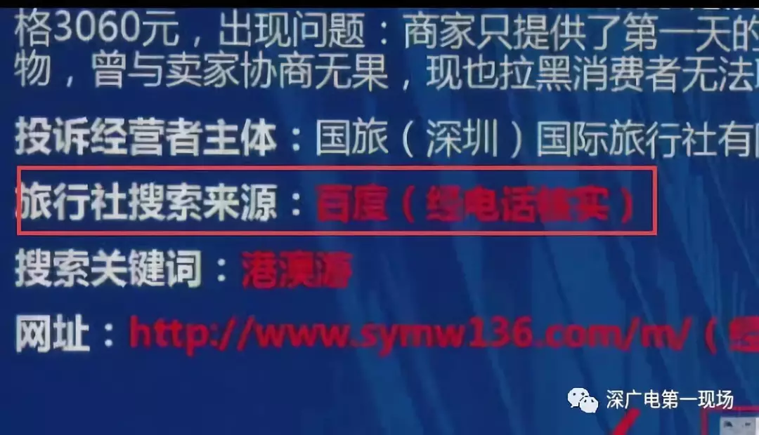 深圳市消委會(huì)調(diào)查發(fā)現(xiàn),搜素“港澳游”、“國(guó)旅”等關(guān)鍵詞時(shí),搜索頁面會(huì)出現(xiàn)加V等級(jí)認(rèn)證的旅行社廣告信息,但經(jīng)核實(shí),“深圳信用網(wǎng)”商事主體登記信息中并無該企業(yè)。