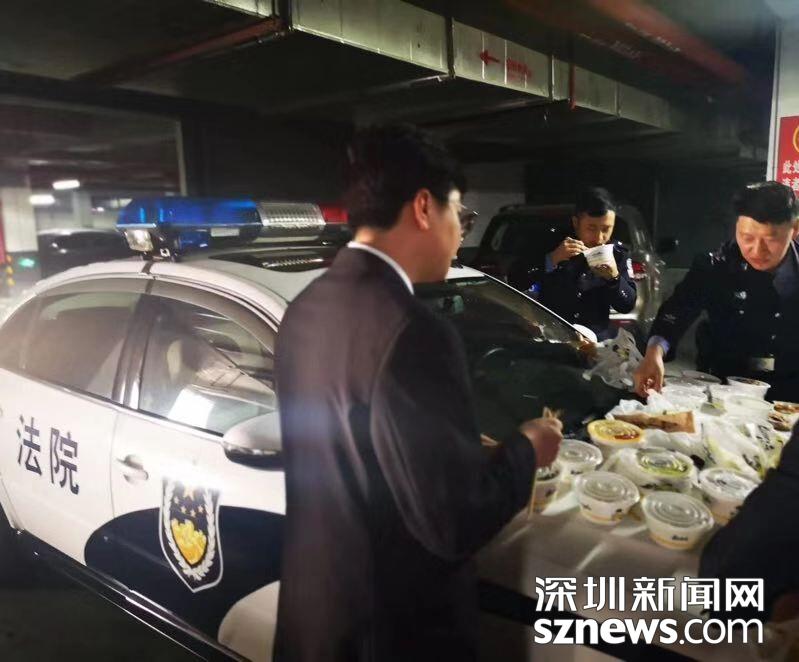 夠拼,所以可以為了完成執(zhí)行任務(wù)簡單扒兩口快餐!上午10點半,執(zhí)行法官劉規(guī)海獲得涉案車輛財產(chǎn)線索,他和同事們立即動身火速趕往車輛所在地龍崗區(qū)?!耙坏┌l(fā)現(xiàn)財產(chǎn)線索必須馬上行動,早一秒行動,申請執(zhí)行人權(quán)益就多一分保障?!苯?jīng)過不斷地跟蹤、查找,劉法官最終順利連續(xù)扣押了2臺車輛,這時已是中午1點多了,他們才顧得上在路邊吃了一頓快餐。