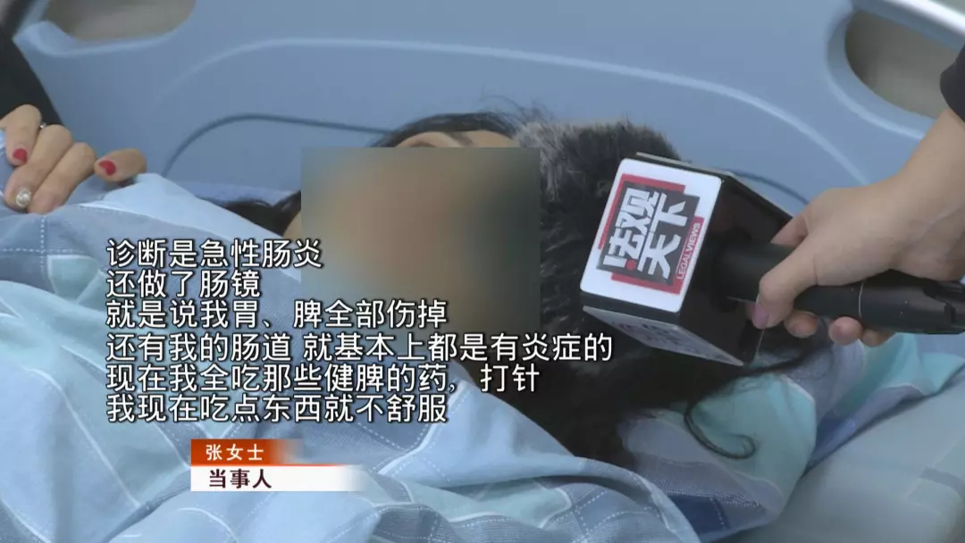 可是繼續(xù)服用酵素后,張女士發(fā)現(xiàn)身體情況還是不對(duì)勁,當(dāng)她再找楊女士進(jìn)行反映時(shí),對(duì)方竟然把自己拉黑了。無奈之下,張女士找到了廣東天成健康管理有限公司的相關(guān)負(fù)責(zé)人,對(duì)方提供了一些中藥讓張女士服用。吃了幾副藥后,張女士的病情仍然未見好轉(zhuǎn),一月底,張女士住進(jìn)了醫(yī)院。一檢查,張女士發(fā)現(xiàn)自己一下瘦了二十斤,但是身體狀態(tài)大不如前,如今甚至要服用抗抑郁的藥物才能入睡。