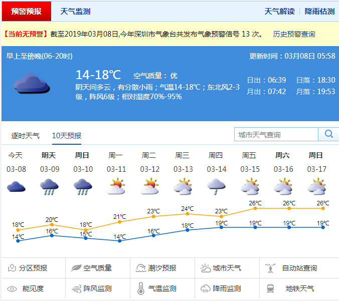 深圳新聞網(wǎng)2019年3月8日訊(記者陳婕)受降雨云系影響,深圳今天還是持續(xù)陰雨又體感清涼的天氣。記者從氣象部門獲悉,此次降雨將持續(xù)至3月10日。