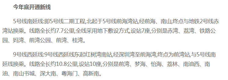 2、今明兩年深圳市8條地鐵建成通車(chē) 軌道交通網(wǎng)將延伸到鹽田、光明、平湖、觀瀾