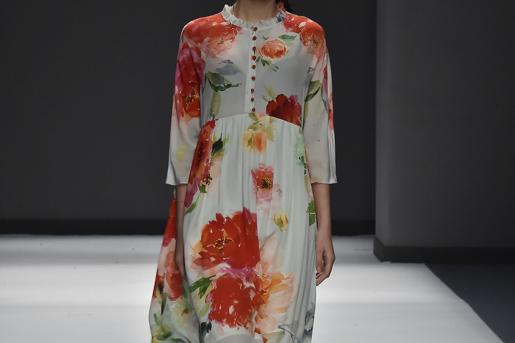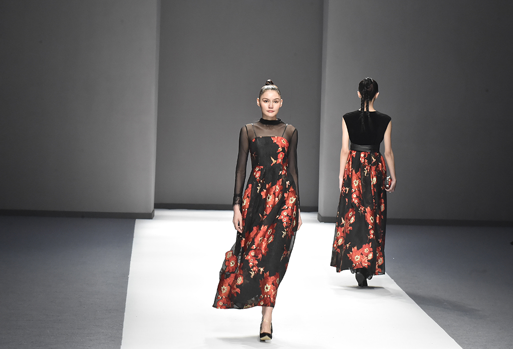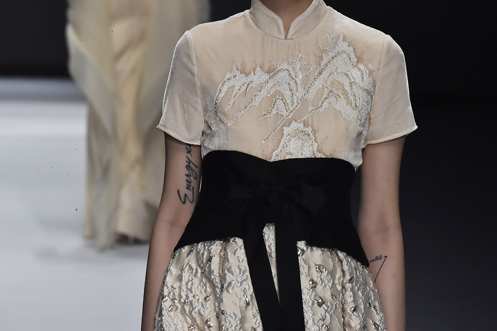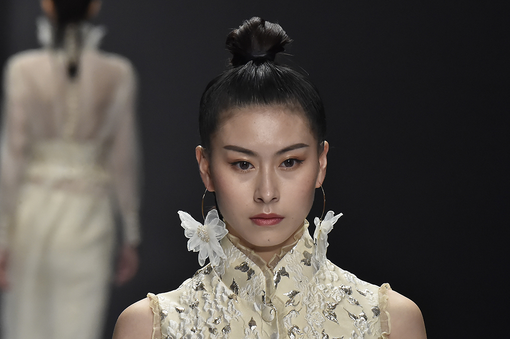 模特正在展示品牌Sunshine見(jiàn)花開(kāi)的服裝花朵作為設(shè)計(jì)的一部分凸顯東方美感