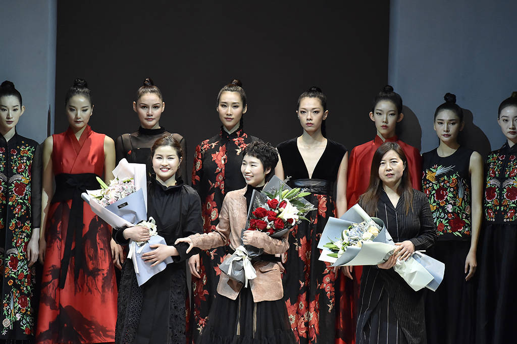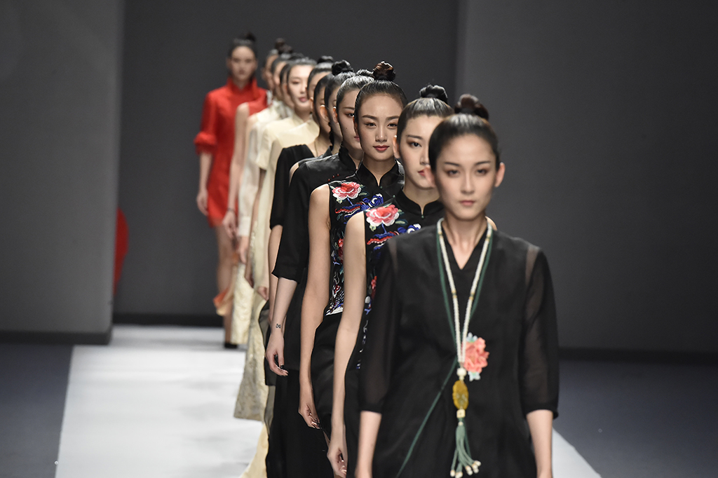 模特正在展示品牌Sunshine見(jiàn)花開(kāi)的服裝 紅色的服裝盡顯東方美感