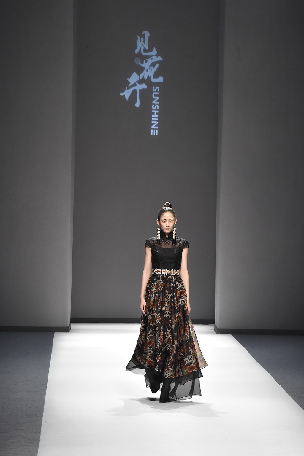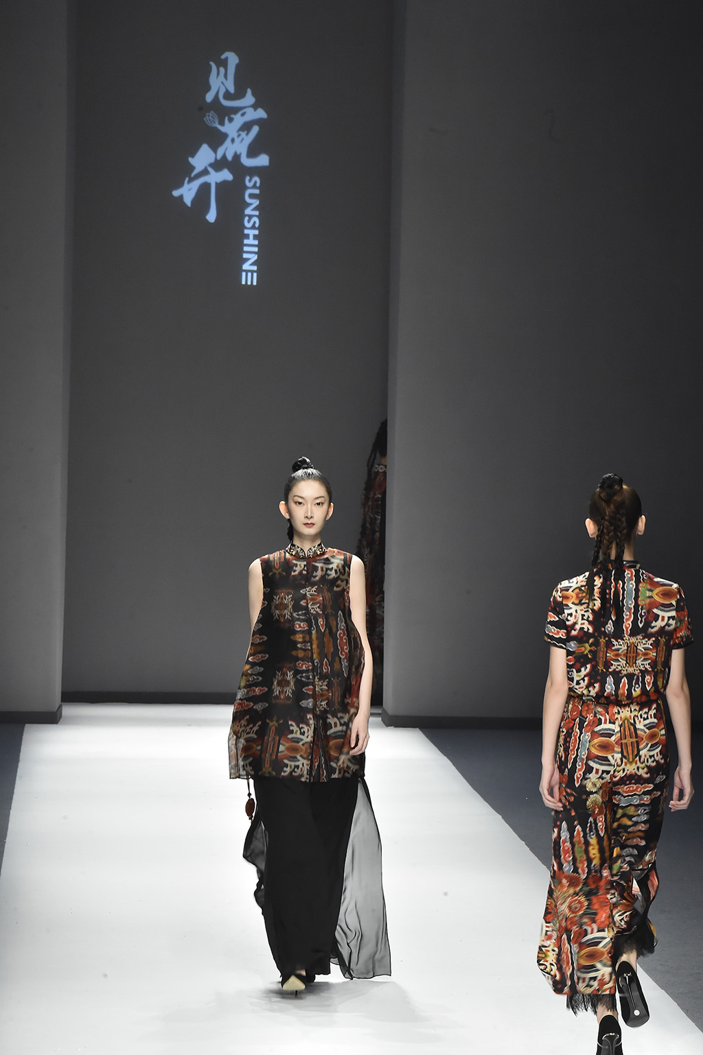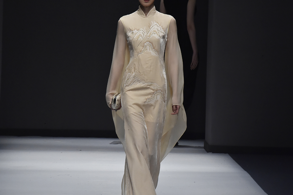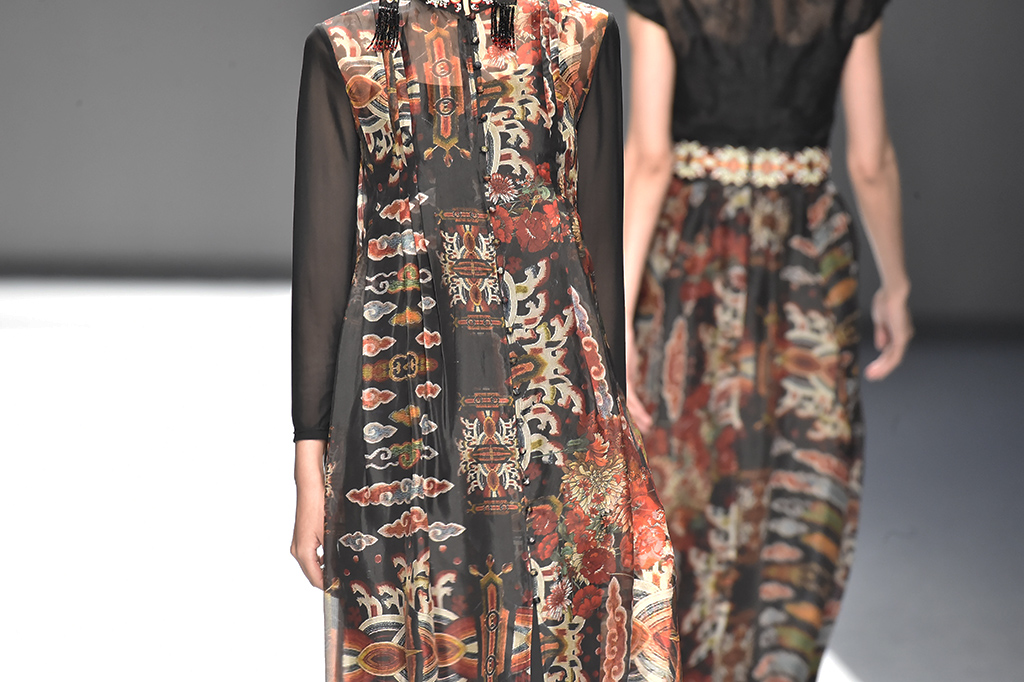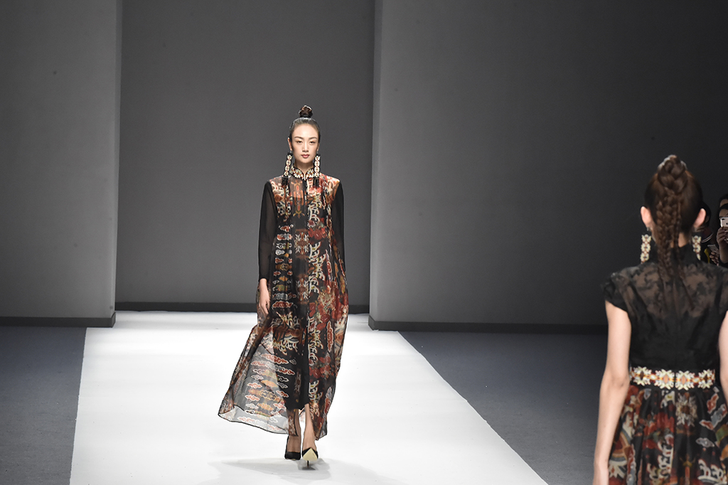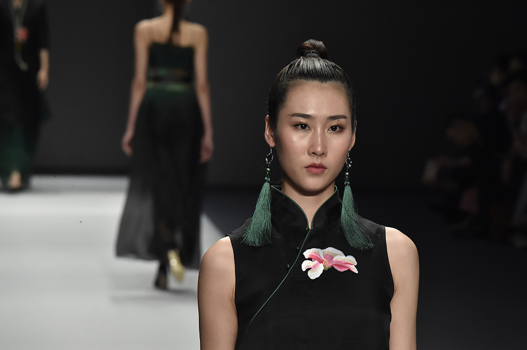 模特正在展示品牌Sunshine見(jiàn)花開(kāi)的服裝服裝凸顯東方特色