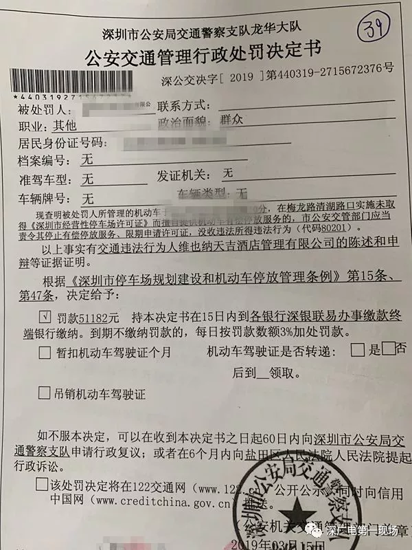 根據(jù)《深圳市停車場規(guī)劃建設(shè)和機(jī)動車停放管理?xiàng)l例》和《深圳市經(jīng)營性停車場設(shè)施管理暫行辦法》的規(guī)定龍華交警依法沒收該停車場非法所得51182元,處罰款5000元,并開具整改通知書,要求該酒店限期內(nèi)進(jìn)行整改。