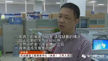 民治建設(shè)工程事務(wù)中心方面表示,他們已經(jīng)加派人手在現(xiàn)場清理死魚,并會將這些清理出來的死魚運離水庫做無害化處理,盡量將腥臭氣味對居民的影響降到最低。