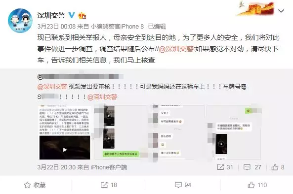 為了確保車內(nèi)乘客安全,深圳交警與舉報(bào)人進(jìn)行聯(lián)系,與此同時(shí)迅速掌握車輛及駕駛?cè)诵畔ⅲ?/span>對(duì)車輛駕駛情況展開調(diào)查持續(xù)關(guān)注車輛動(dòng)態(tài)。
