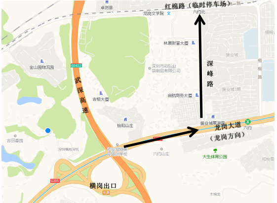 2、自市區(qū)出發(fā)路線:往龍崗大道龍崗方向行駛,在深峰路路口左轉進入,經深峰路進入紅棉路臨時停車場,轉乘接駁大巴。