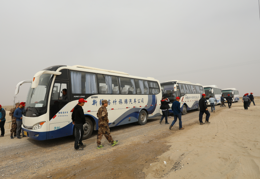 每年春秋兩季,麥蓋提縣約10萬名干部群眾都要到沙漠里植樹