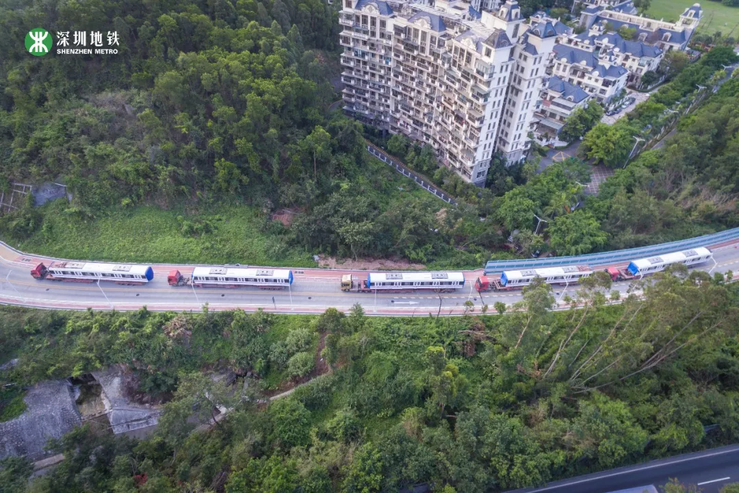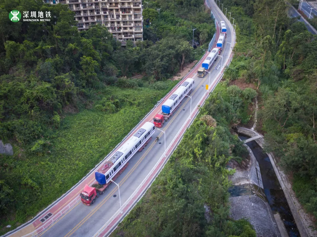列車“乘坐”平板卡車從中車株機(jī)廠起運(yùn),經(jīng)過(guò)近1000公里的鐵公路運(yùn)輸,最后抵達(dá)深圳深云車輛段。
