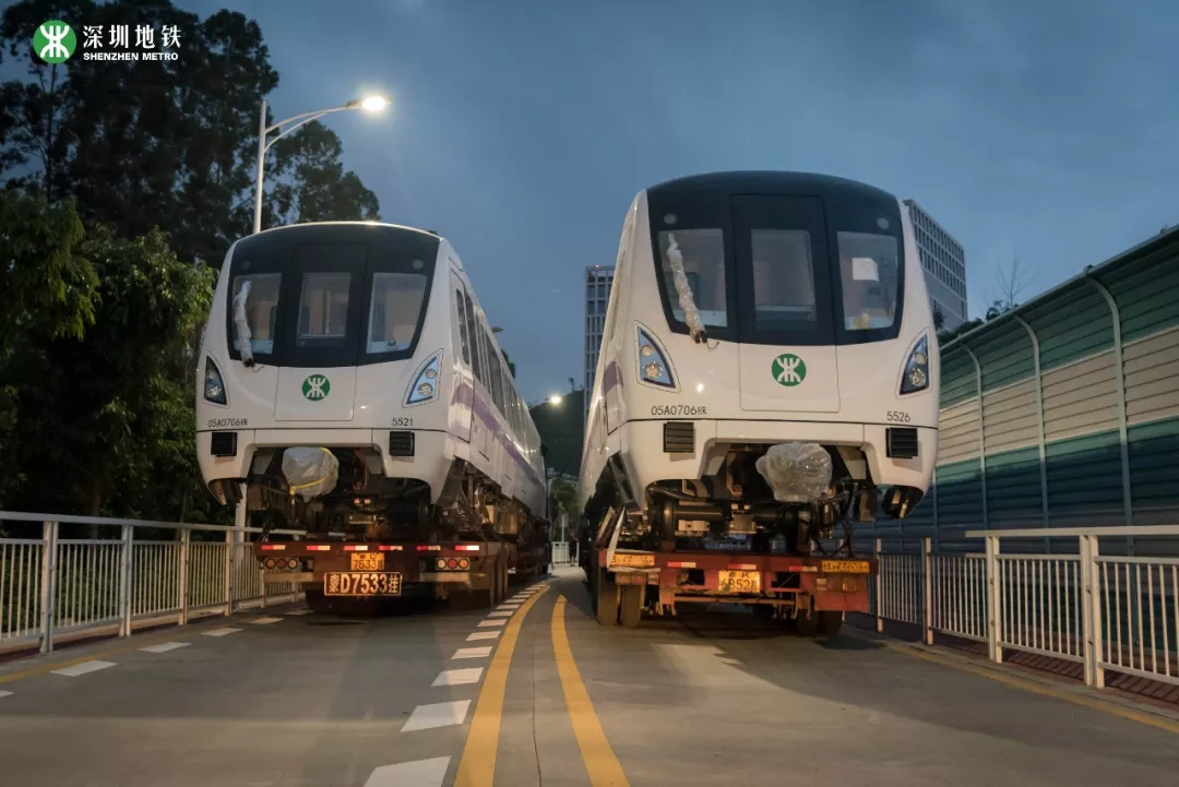 2019年4月1日,深圳地鐵5號(hào)線南延線首列車運(yùn)抵深運(yùn)車輛段。