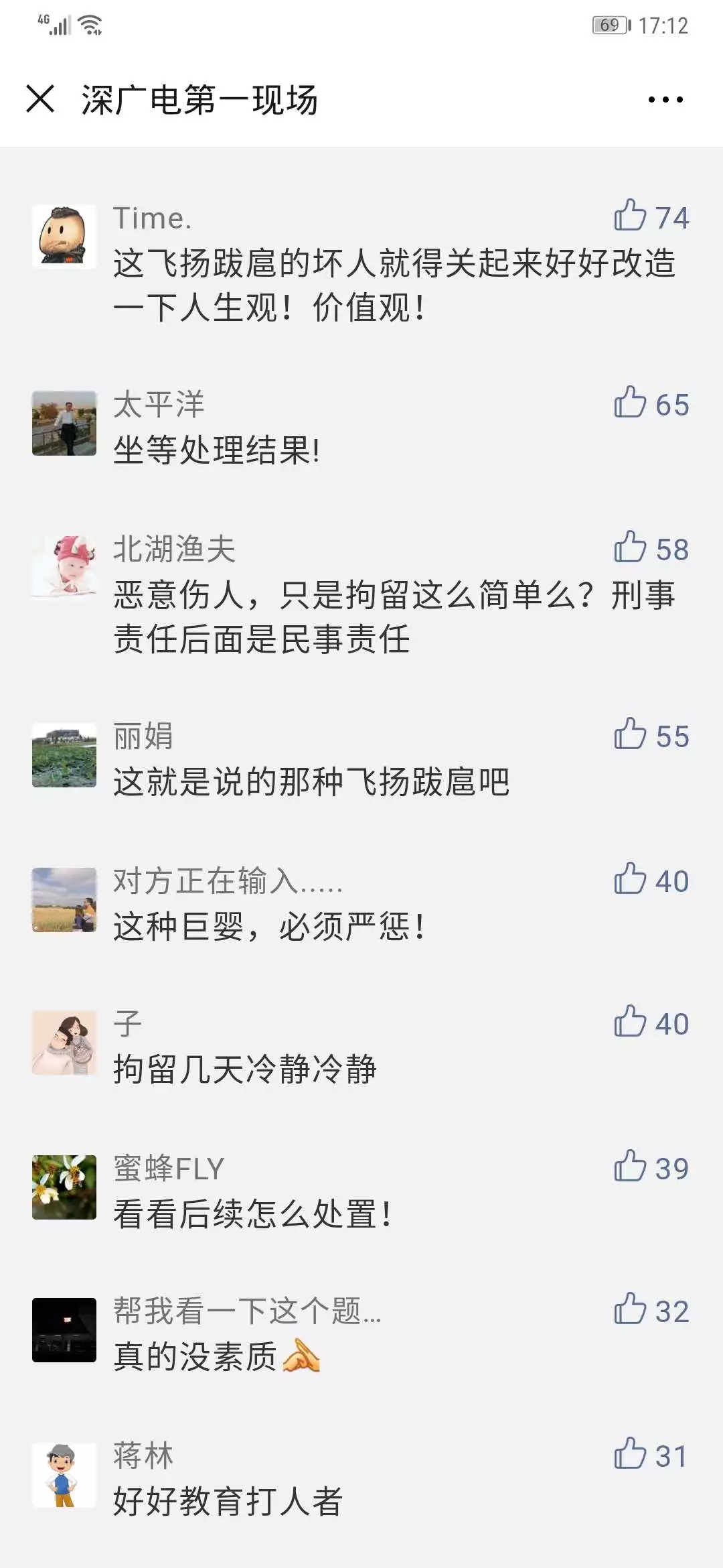 而在當(dāng)天節(jié)目播出之后,不少觀眾在我們第一現(xiàn)場微信公眾號后臺留言,對打人者的行為進行譴責(zé)。