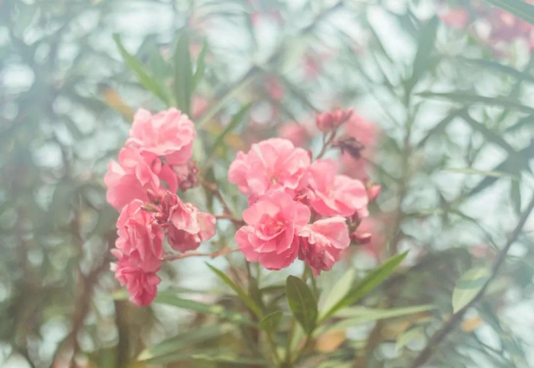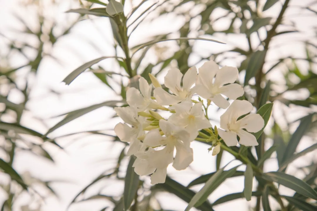 夾竹桃屬常綠直立大灌木,高可達(dá)5米,常見(jiàn)于路邊,花園等地。它的花期很長(zhǎng),幾乎全年,尤其在夏秋開(kāi)的最盛,常見(jiàn)的顏色有粉色、白色、黃色等。