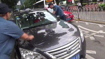 執(zhí)法人員立刻駕駛執(zhí)法車輛進(jìn)行攔截,隨后在一紅綠燈路口將車輛攔停,執(zhí)法人員再次要求司機(jī)下車接受檢查。
