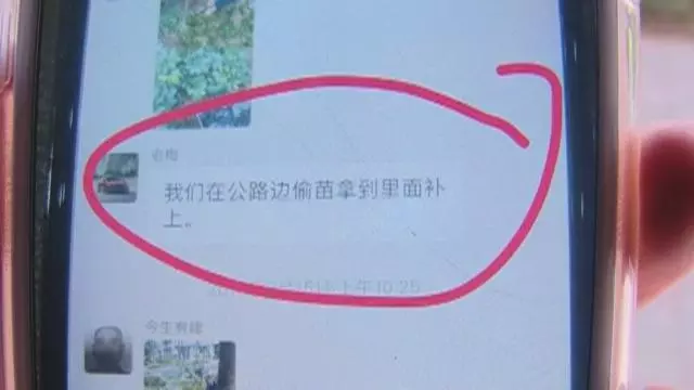 3月15日上午,一名工作人員在群里說,“我們在公路邊偷苗拿到里面補上”。業(yè)主表示,物業(yè)管理處主任也在這個群里面。