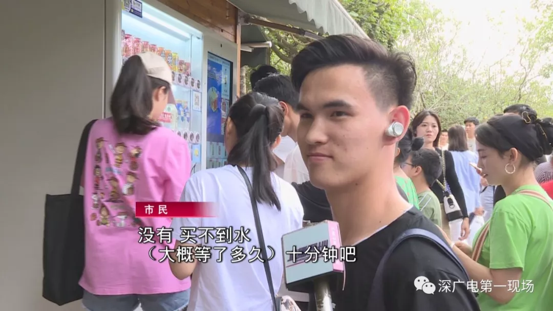 五一假期第一天,就有不少的市民朋友報(bào)料說,深圳灣公園人流爆棚,到處都是人擠人。下午5點(diǎn),記者來到園區(qū)內(nèi)的自動(dòng)售賣機(jī)旁,發(fā)現(xiàn)已經(jīng)擠滿了人,不少人正在排隊(duì)買水。