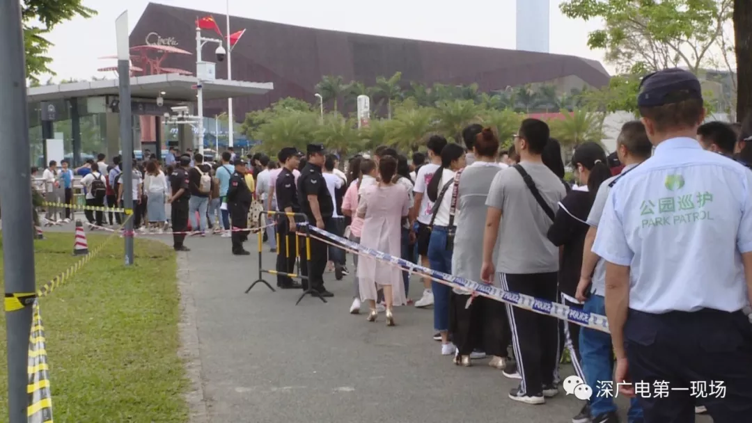 從下午5點(diǎn)半開(kāi)始,園內(nèi)游客逐漸散去,深圳灣公園地鐵站兩個(gè)進(jìn)站口外,排隊(duì)的人都超過(guò)了百米,安保人員增設(shè)了鐵馬來(lái)維持現(xiàn)場(chǎng)秩序。