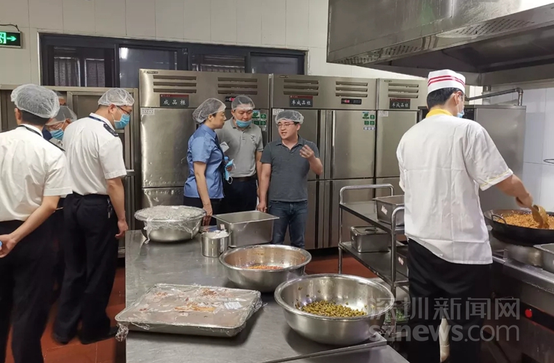 聯(lián)合檢查組工作人員對(duì)深圳學(xué)校食堂進(jìn)行檢查(深圳人民市檢察院供圖)
