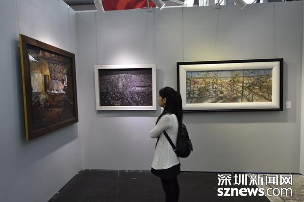 國(guó)內(nèi)外知名藝術(shù)家展區(qū),市民在觀賞作品