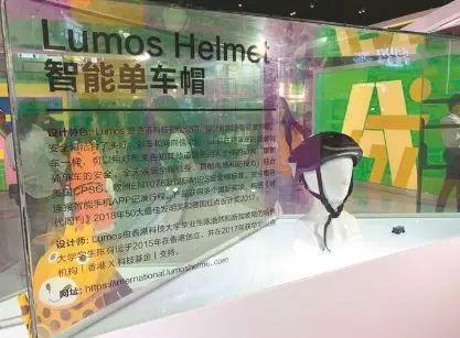 文博會(huì)現(xiàn)場(chǎng)展示的智能單車帽。晶報(bào)記者 吳欣/ 攝