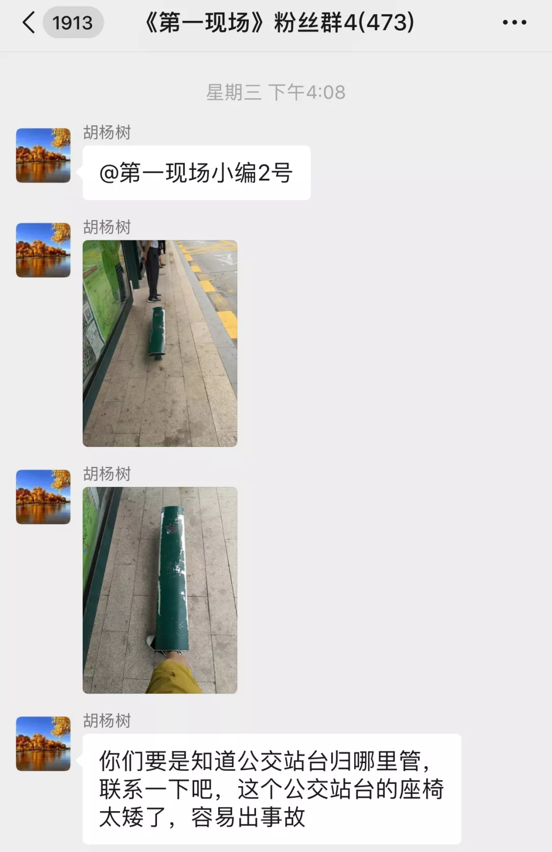 第一現(xiàn)場的粉絲在粉絲群發(fā)來了幾張照片,要好好給,公交站臺的候車凳挑挑刺。