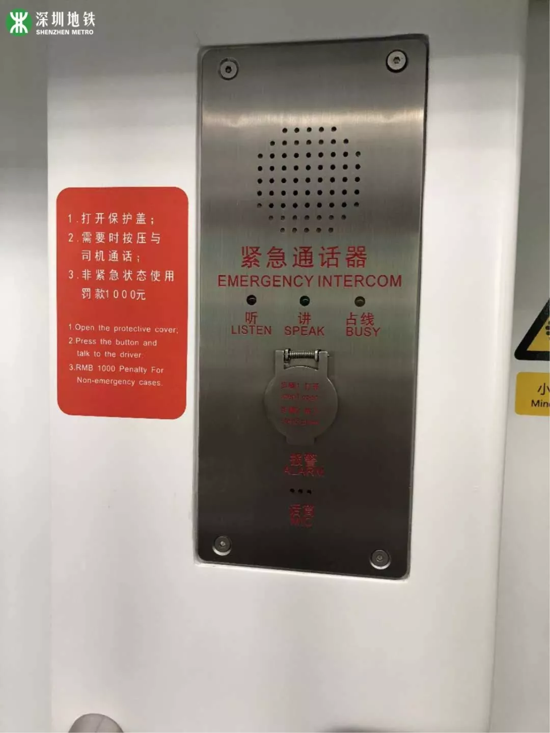 列車內(nèi)配備了司機對講裝置,若車廂內(nèi)發(fā)生事故,可第一時間通報列車司機。