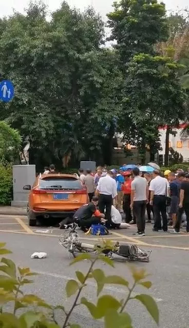 現場可以看到。橙色SUV已經停在路邊。車旁是一輛被撞翻的電單車,救護車到達現場后,迅速對男子實施搶救。