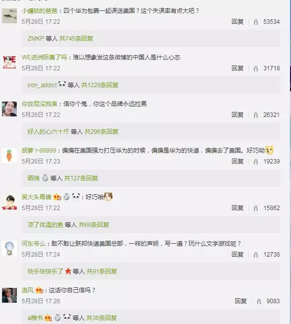 記者查證發(fā)現(xiàn),5月23日18點(diǎn)42分,聯(lián)邦快遞中國公司官方微博曾經(jīng)發(fā)帖否認(rèn)轉(zhuǎn)運(yùn)事件,稱“有關(guān)近期社交媒體平臺流傳聯(lián)邦快遞將客戶貨件沒收,并轉(zhuǎn)運(yùn)至美國檢查的消息與事實(shí)嚴(yán)重不符”。