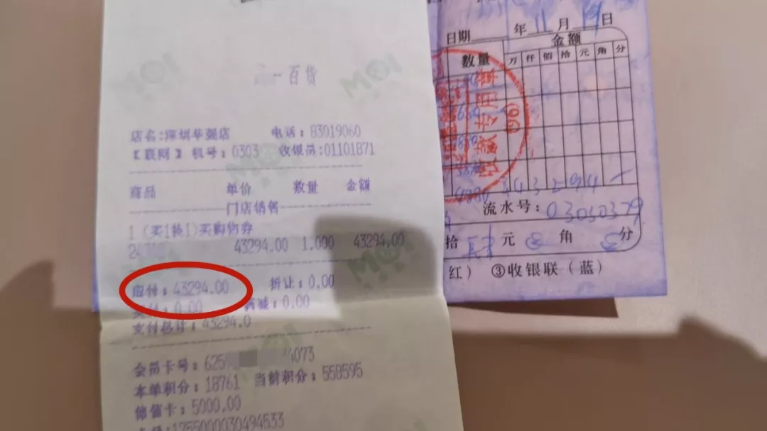 李小姐出示了這批衣服的購(gòu)物小票,時(shí)間是2017年11月。李小姐說,之所以會(huì)幫顧客墊付4萬多元買衣服,一方面是為了服務(wù)好老顧客,另一方面是這單生意做成,會(huì)增加李小姐的業(yè)績(jī)。