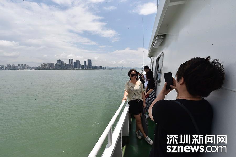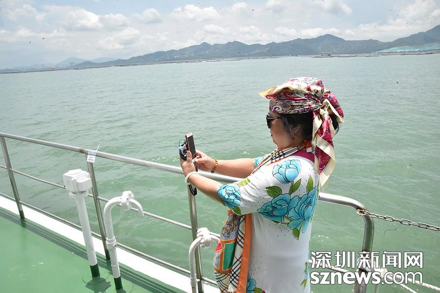 120名市民代表分成兩個航次乘船出游,每航次60人。中國海監(jiān)9012船從深圳濱海休閑帶海監(jiān)廣場碼頭起航,市民海上參觀了深圳灣大橋,經(jīng)國際郵輪母港、SCT碼頭,到大鏟島附近海域,后返回蛇口海監(jiān)基地。