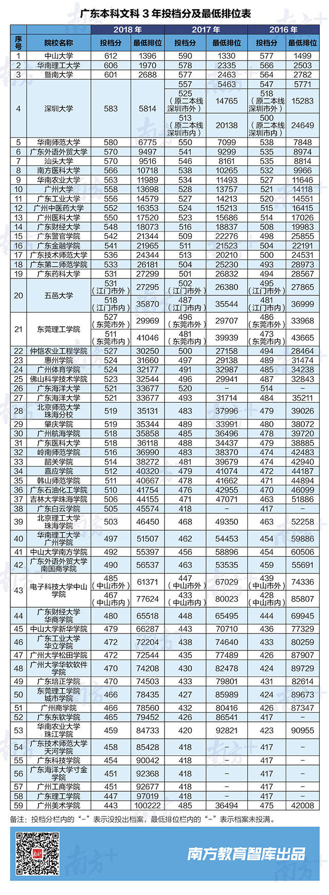 南方教育智庫(kù)獨(dú)家統(tǒng)計(jì)了2016-2018共3年廣東高校錄取分和最低排位,為廣東考生全面分析,排位多少名,能上廣東好大學(xué)?
