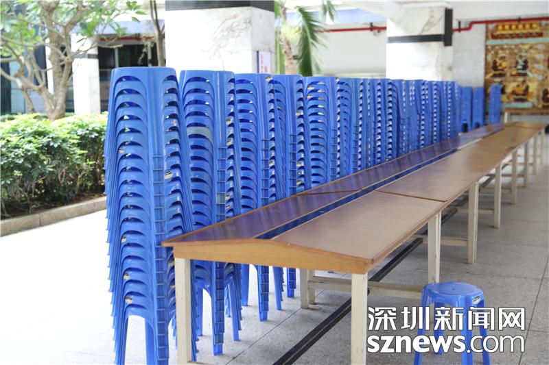 考點(diǎn)內(nèi)已備好座椅,為第二天的高考提供便利