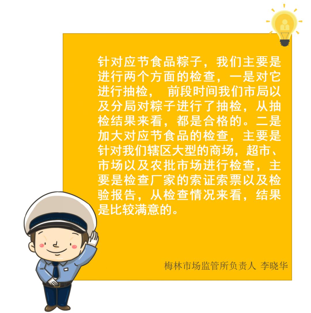 一年一度端午“粽”動(dòng)員時(shí)刻到! 現(xiàn)在是不是想品嘗粽子的美味了? 肉粽肥瘦恰當(dāng)?shù)娜澫?/p> 蛋黃粽蛋黃留油的鮮潤 白粽沾綿糖的甜醇...... 于是總會來一場 甜咸粽黨battle 而有職業(yè)病的食安君只想關(guān)注安不安全 先關(guān)注下本期的【食安周報(bào)】 2019年食品安全抽樣檢驗(yàn)情況通報(bào) (第二十一期) 本次共抽檢生產(chǎn)、流通、餐飲環(huán)節(jié)應(yīng)節(jié)食品(粽子)200批次,涉及經(jīng)營主體123家次,共檢測食品指標(biāo)1738項(xiàng)次,全部檢測合格。 全部合格 深圳的小伙伴 看完這個(gè)抽檢 吃起粽子來,就更安心啦~ 抽檢現(xiàn)場 針對應(yīng)節(jié)食品粽子 執(zhí)法人員進(jìn)行兩個(gè)方面的檢查 戳視頻直擊檢查現(xiàn)場 現(xiàn)場還對制作粽子原料糯米 還有蔬菜進(jìn)行快檢 糯米我們檢測了黃曲霉毒素B1 沒有發(fā)現(xiàn)問題 蔬菜樣品(農(nóng)藥殘留)抑制率都低于50% 兩個(gè)都是合格的 可以放心吃 但是你懂得怎么吃嗎? 食安君這就告訴你 吃粽子的正確姿勢? 食用過量粽子而引發(fā)消化不良的情況時(shí)常發(fā)生老人、小孩和有胃腸道基礎(chǔ)疾病的人 要格外注意! 粽子好吃但要適可而止 粽子選購秘籍 說起買粽子,食安君又要老生常談了,一定要通過正規(guī)渠道購買哦,不要購買路邊的“三無”粽子。 同時(shí)注意查看外包裝的食品標(biāo)簽,如生產(chǎn)日期、保質(zhì)期、生產(chǎn)者名稱和地址、成分或配料表、食品添加劑、食品生產(chǎn)許可證編號等標(biāo)識是否齊全;并仔細(xì)檢查粽子包裝是否完整,真空包裝是否漏氣漲袋,散裝粽子有無變質(zhì)現(xiàn)象等。 健康吃粽小貼士 1.粽子大多屬于高糖、高鹽、高能量食物,不宜過量食用,尤其是糖尿病、三高、肝膽等疾病患者,一定要控制食用量。 2.吃粽子時(shí),最好搭配一些蔬菜、湯羹等,既均衡營養(yǎng),又有助消化;同時(shí),盡量少蘸醬油、砂糖等調(diào)味料,這樣會增加鈉和糖的攝入,不利于健康。 粽子好吃不貪吃 上周,我們向市民發(fā)出了 “你點(diǎn)名,我們來抽檢”的倡議, 我們的食品安全快檢車就來到福田梅林 食品安全快檢車 最后 食安君還是要提醒大家 外出就餐要到證照齊全 環(huán)境衛(wèi)生的餐館 學(xué)會看“笑臉”選餐廳 不選擇無證或衛(wèi)生環(huán)境差的路邊攤 歡迎大家積極參與食品安全監(jiān)督工作 關(guān)注每周食品抽檢信息公布 欄目:食安周報(bào) 民以食為先,食以安為天,食品安全是社會各界最為關(guān)注的重點(diǎn)。深圳市市場監(jiān)管局聯(lián)合《第一現(xiàn)場》欄目推出《食安周報(bào)》欄目,發(fā)布食品安全權(quán)威信息,為市民帶來第一手食安資訊。 播出時(shí)間:每周二晚上7:30 播出平臺:深圳廣電《第一現(xiàn)場》 每周抽檢信息通報(bào) 定期公布最新的食品及食用農(nóng)產(chǎn)品抽檢信息。 案件現(xiàn)場 直擊市市場監(jiān)管局執(zhí)法人員現(xiàn)場執(zhí)法,以案件解讀食品安全知識,增強(qiáng)現(xiàn)場感。 食品安全科普 對食品安全相關(guān)知識進(jìn)行科普,回應(yīng)近期食品安全相關(guān)謠言,提示食品安全風(fēng)險(xiǎn)。 編輯整理:深圳食事藥聞 轉(zhuǎn)載請注明以上內(nèi)容