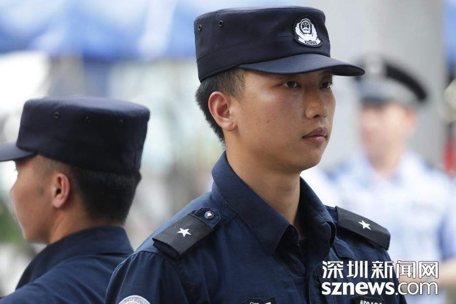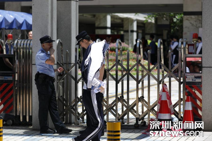 深圳實驗中學(xué)考點外,高考保障人員正在執(zhí)勤