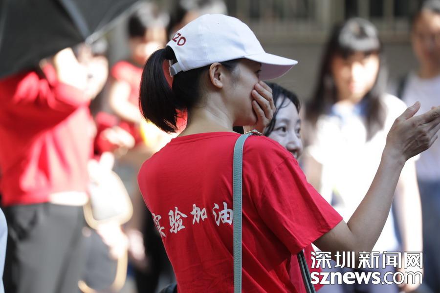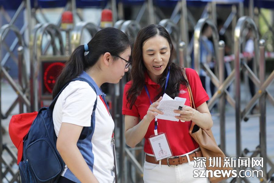 深圳實驗中學(xué)老師等待在考點外,為學(xué)生發(fā)放準(zhǔn)考證