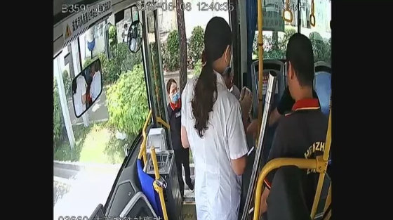 從現(xiàn)場(chǎng)的監(jiān)控視頻可以清楚地看到,犬主楊先生牽著寵物狗從傅女士和孩子之間穿過。