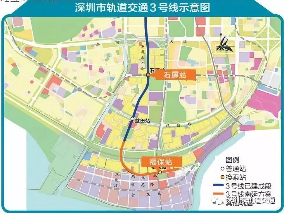 深圳地鐵3號線南延工程自益田至福田保稅區(qū),線路長1.5公里,設站1座,投資10.1億元。