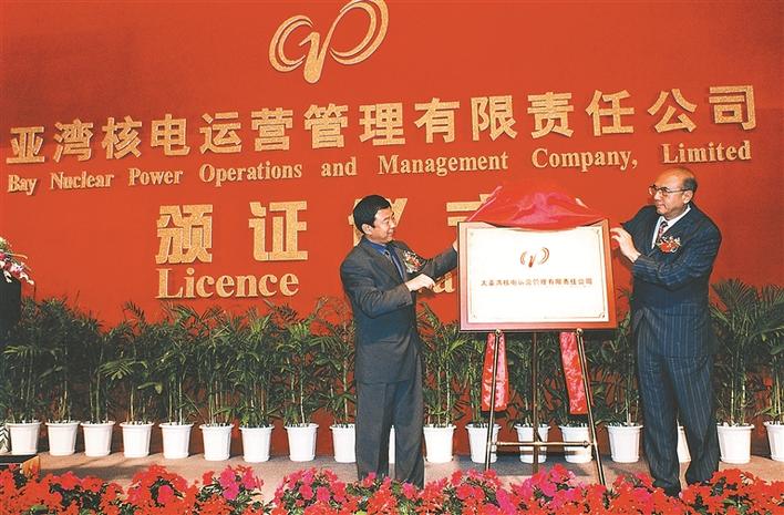 ▲2003年,中廣核核電運(yùn)營(yíng)有限公司成立,昝云龍(右)揭牌。