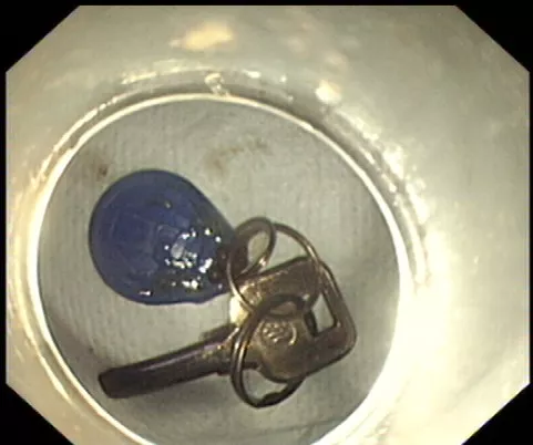 醫(yī)生準(zhǔn)備在胃鏡下取出鑰匙,不料,因鑰匙太大在常先生喉嚨附近食管入口處卡住了,取不出來(lái),最后,醫(yī)生決定給常先生做無(wú)痛胃鏡,麻醉后,常先生食管入口處肌肉松弛,鑰匙終于順利取出!。
